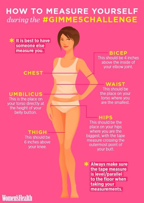 - Take your measurements: neck, chest, left and right bicep, waist (natural), hips, left and right thigh, left and right calf.